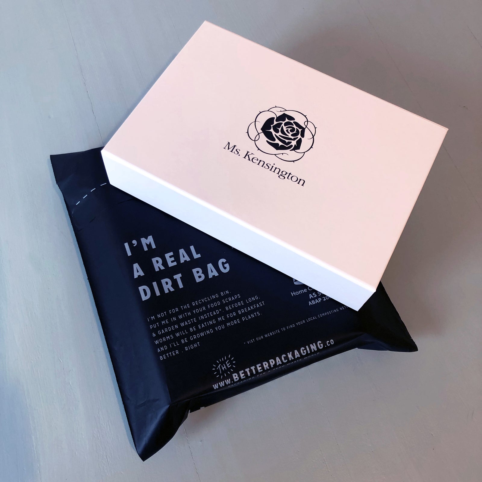 We source from sustainable suppliers such as Better Packaging Co to eliminate plastic from our packaging. Our mailers are made from corn starch and not only feel velvety smooth to the touch but are fully compostable, in 9 months. Simply put them in your food waste organics or compost bin and let nature do the rest.